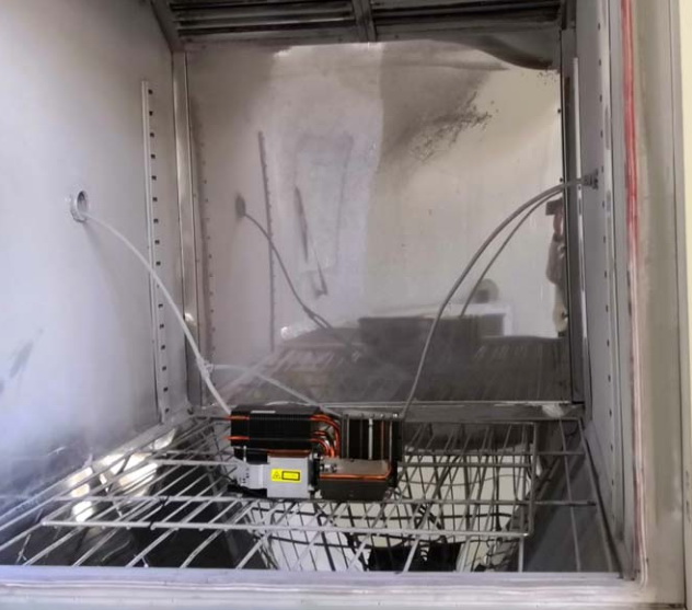 IP66檢測(cè)根據(jù)GB/T 4208-2008標(biāo)準(zhǔn)進(jìn)行。在防塵檢測(cè)中,激光光源被放置在沙塵箱中,加負(fù)壓持續(xù)試驗(yàn)8小時(shí),試驗(yàn)結(jié)束后經(jīng)檢查,光源內(nèi)部需無(wú)灰塵進(jìn)入。