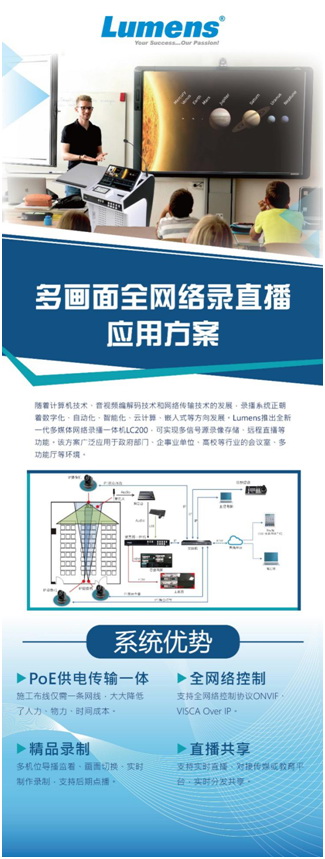 •攝像機控制:可控制Lumens IP攝像機云臺轉動、變焦/聚焦、預設