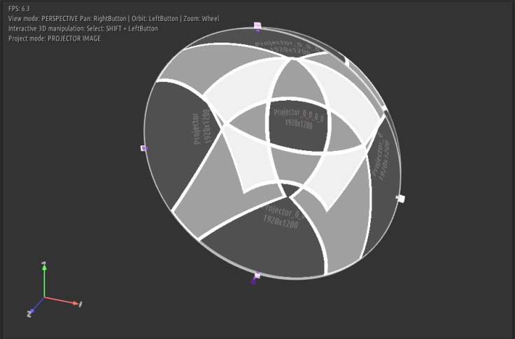 多機融合(5臺投影機融合, 實現半球圖像顯示)