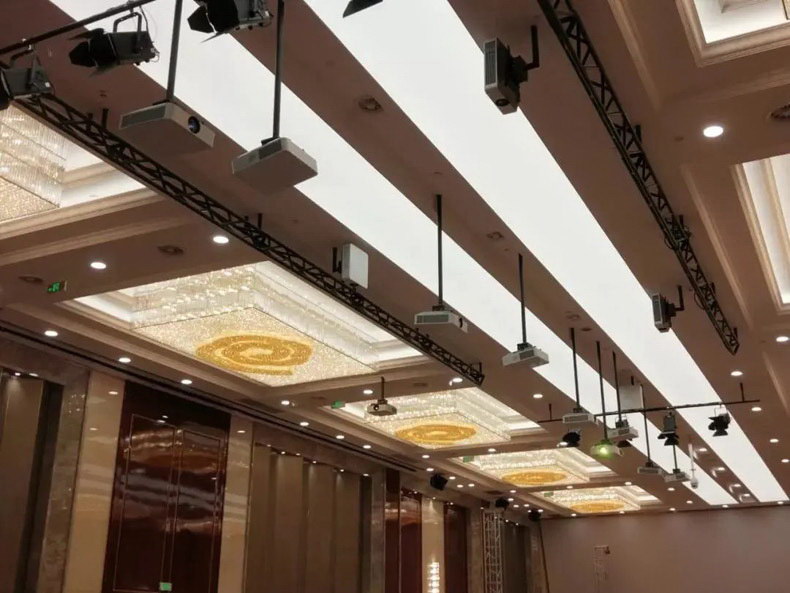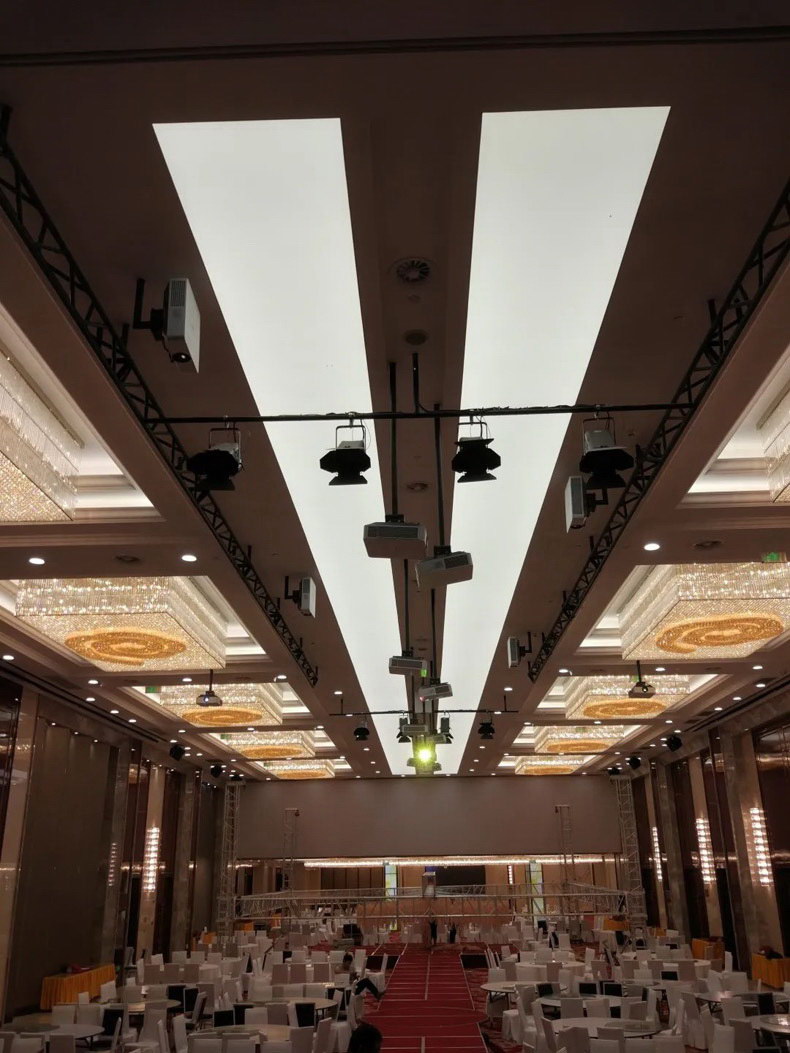 在這個宴會廳,我們能看到將原本應用于央視春晚的舞美特效,應用在傳統宴會廳中,到底能夠帶來怎么樣的視覺效果體驗。