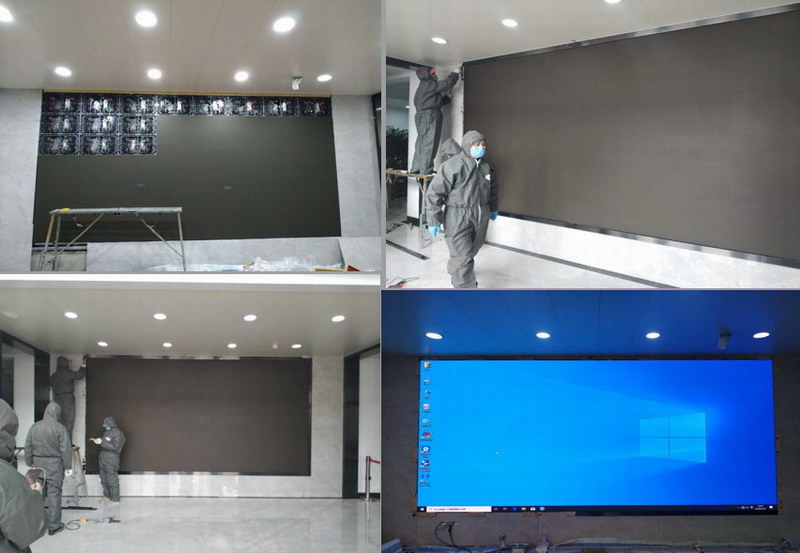 施工階段,項目施工人員克服對疫情的恐懼以及住宿、就餐困難,身穿防護服通宵奮戰,最終在承諾的4天時間內順利完成了大屏安裝調試工作,并于2月26日成功點亮。