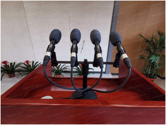 貴賓室作為重要領導參訪、貴客接見及會前等候時使用,需具備討論、洽談、展示等會議形式。對語言擴聲需高清晰度品質音質,無嘯叫無干擾影響。因此,貴賓室擴聲系統選擇的專業會議音箱,動態性能良好,音質清晰自然。討論話筒則配置的紅外對頻U段無線話筒,PLL射頻穩定技術、頻率精準,可一鍵紅外對頻設定,操作簡單又穩定。具備超強的抗干擾能力,能夠有效抑制由外部帶來的噪音干擾及同頻干擾,有效拾音距離可達60cm(視環境變化而定),使得會談更加輕松。