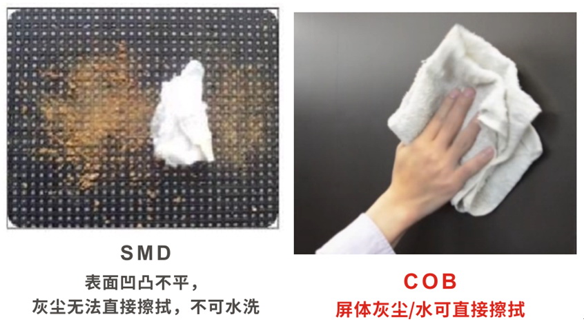 COB小間距LED屏能滿足使用環(huán)境要求。COB顯示屏無燈腳裸露等問題,表面平滑無縫隙,具有防潮、防塵、防腐蝕、防靜電、防磕碰、耐磨等優(yōu)良性能,能防止從各個方向飛濺而來的水侵入。COB顯示屏表面易清潔,可有效避免氣溶膠、灰塵等有害物質(zhì)沉積。在對屏幕清潔過程中無需關(guān)屏,保證屏幕24小時無間斷運(yùn)行。