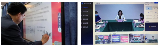 疫情之下,為了盡量避免人群聚集,做好疫情防控工作,并推動此次簽約環節能夠順利進行,河南省實驗小學與寧夏西吉縣第一小學采用希沃交互智能錄播搭建云端互動環境,以云上形式順利舉行座談會。通過希沃交互智能錄播設備和遠程互動助手,河南省實驗小學的王獻甫校長在一體機進行板書簽字時,一千多公里外的寧夏西吉縣第一小學的范維明校長也可同步板書,真實還原現場簽約場景。