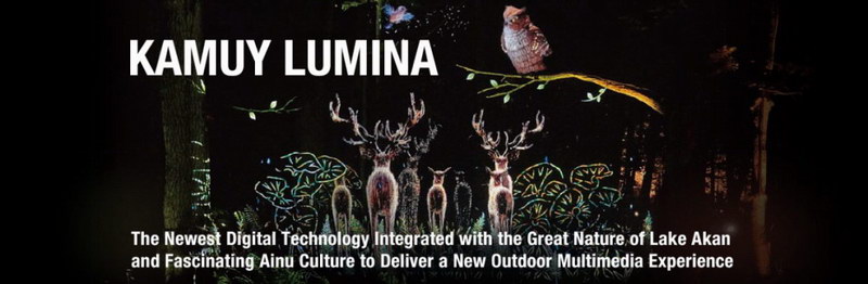 日本北海道阿寒湖溫泉聯合世界頂尖多媒體娛樂影像創作公司MOMENT FACTORY推出了夜間漫步作品Kamuy Lumina。