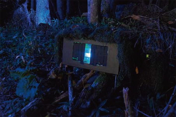 KAMUY LUMINA是Lumina夜行系列中第一個在森林公園里的項目。 因此,項目組必須和環境部門和林業部門合作,對自然環境加以最大化的保護。Toshinobu先生表示:“在部署設備的時候,我們要確保不改動哪怕是一棵樹的位置。由于項目位于阿寒國立公園內,步道在白天對公眾開放,我們就用樹葉對投影機、音像設備和電纜進行偽裝,將其巧妙地隱藏在樹叢里,以確保它們不破壞公園的綠植觀賞效果。”