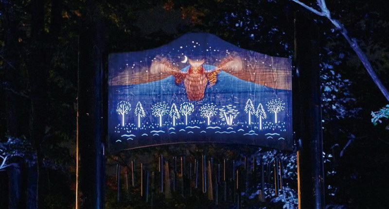 以阿寒湖和國立公園自然景點為依托,本地愛奴族的神話故事為靈感源泉,同時結合松下的激光投影機作為光影設備,提供了沉浸式森林夜行體驗。