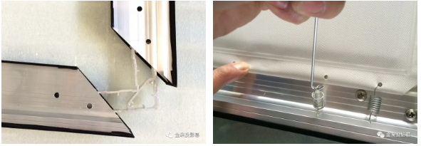 HK-80B畫框幕使用頂級高強度鋁合金金屬框架,鋁合金框架表面采用高級貼絨處理,高貴典雅,并可防止投影造成的反光。密布的精密彈簧裝置從各角度調整幕面張力,能將由溫度、濕度引發的布料伸縮從各方位拉伸,確保幕布不受外力影響而產生波紋,平整性非常優越。
