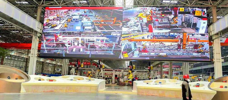 艾比森為三一集團智能化制造車間打造的LED顯示屏,整屏面積232㎡,由艾比森商顯爆款昆侖 KL系列產品打造。