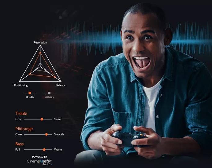 trevolo音響是明基旗下專業靜電薄膜音響,TH685在研發制作時,納入trevolo音響技術,確保音畫雙全,一邊聆聽或恢弘森冷或明快悠揚的游戲BGM,游戲體驗更富有沉浸感。