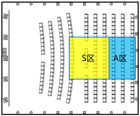 備注:圖中為15米銀幕寬度的影廳最佳觀影S區(qū)、A區(qū)