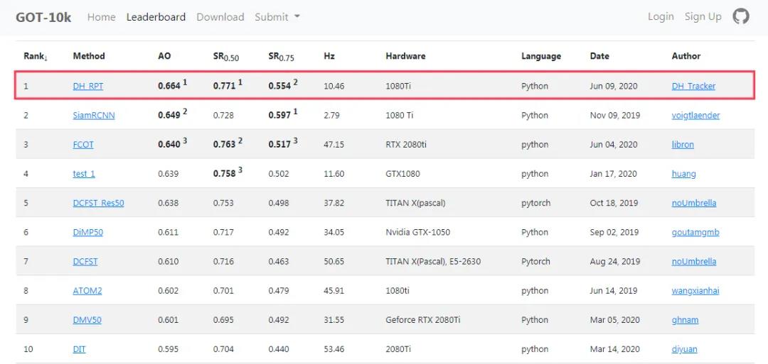 大華視覺目標跟蹤算法獲得GOT-10K評測排行榜第一