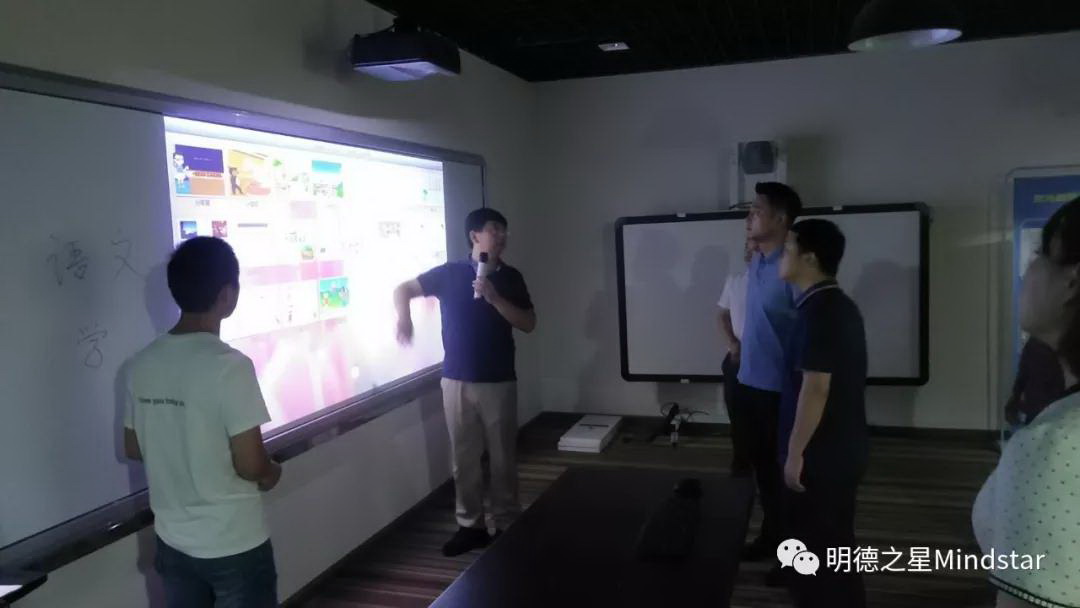 大廳參觀完后,副總經(jīng)理孔慶峰邀請各位領(lǐng)導(dǎo)前往公司展廳觀看公司的產(chǎn)品,在展示廳內(nèi),副總經(jīng)理孔慶峰就教育投影儀的相關(guān)使用功能,做了相關(guān)的講解、演示,相對于傳統(tǒng)的投影儀,本設(shè)備的主要優(yōu)點在于具有超高的亮度、無塵寫字等。讓老師教學(xué)期間遠(yuǎn)離粉筆危害,同時設(shè)備自帶有相關(guān)專業(yè)的教學(xué)軟件,老師可以隨時隨地備課、教學(xué)、與學(xué)生和家長互動等功能,很好的滿足了學(xué)校的教學(xué)需求。