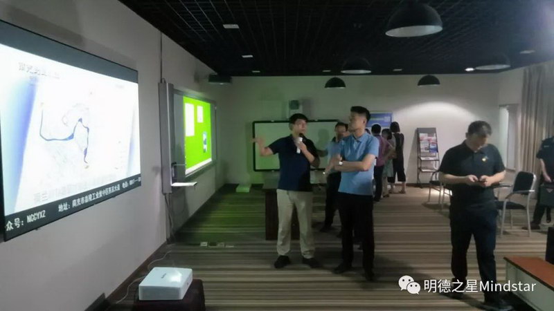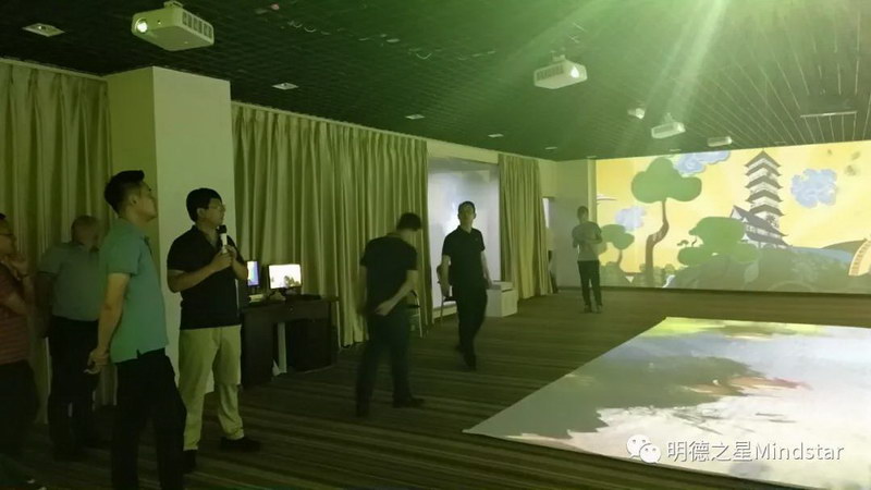 最后,公司副總經(jīng)理孔慶峰為共青團(tuán)的各位領(lǐng)導(dǎo)講解公司的沉浸式體驗廳。產(chǎn)品由多臺設(shè)備通過融合軟件融合而成,在畫面尺寸、顯示效果、功能操作等方面均具有自身顯著特點,廣泛的應(yīng)用在科技館、大型的主體餐館。