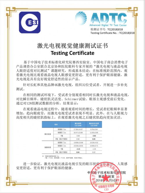 為打造更健康的課堂視覺環(huán)境,長虹投影儀P5系列經(jīng)權(quán)威檢測機構(gòu)的認(rèn)證,在標(biāo)準(zhǔn)視距范圍內(nèi),觀看激光投影比觀看液晶平板人眼感覺更舒適,更有利于眼部健康,激光投影是具有良好視覺舒適性的顯示產(chǎn)品。