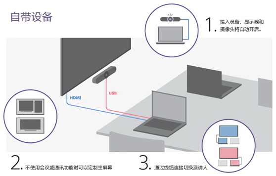 方案結合雙方產品的優勢,可提供4K顯示、日歷集成、內容即時共享、一鍵式觸摸連接等功能,可用于Zoom Rooms、Microsoft Teams。目前,有兩個配置可供選擇:用戶可選擇通過線纜連接自帶設備,開啟視頻會議;或通過觸摸屏一鍵管理會議,同時實現商務日歷平臺的集成。