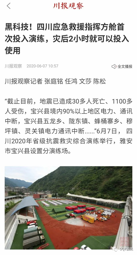四川省消防救援總隊在這場“全災種、大應急”綜合演練中承擔了信息速報、指揮部搭建、通訊保障人員搜救、危化品處置、安置點防火巡查等多個項目內容。其中,被譽為“黑科技”的特別重大災難應急救援現場指揮部首次投入演練。