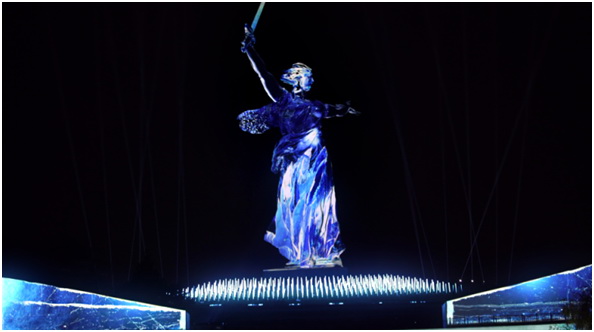 Dreamlaser聯(lián)合創(chuàng)始人 Denis Chuchko表示:“我們已經(jīng)為‘偉大的勝利曙光’裝置準(zhǔn)備好幾年,但今年是特殊的一年。首先,我們現(xiàn)有的技術(shù)能力只需使用非常少的投影機(jī)就能點(diǎn)亮如此規(guī)模的雕像。RGB激光技術(shù)的色彩傳輸質(zhì)量、鮮艷程度和明暗度是讓我們與眾不同的根本原因。從電視畫面的角度來看,這同樣重要,因為成千上萬名觀眾將觀看慶祝活動的現(xiàn)場直播和錄像。在今年的直播中,我們還引入了AR組件。我們在馬馬耶夫崗高地另外安裝26盞聚光燈,并使用數(shù)以千計的LED光柱將高地覆蓋成一片‘燃燒的田野’。”