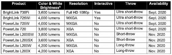 愛普生的最新產品包括非交互式PowerLite型號,可與需要長距離解決方案的教室搭配預裝的交互式白板配合使用。新的BrightLink和PowerLite型號的其他功能包括: