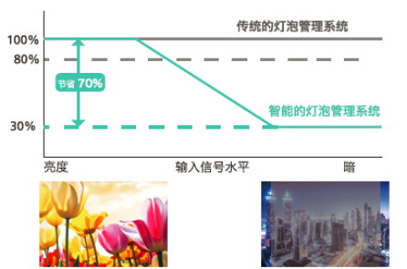 與傳統投影機相比,顯著降低燈泡功耗