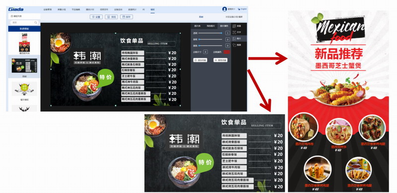 為了滿足這些新零售門店用戶的需求,杰和科技將于7月底上線智慧電子標(biāo)牌系統(tǒng)GDS1.0。該系統(tǒng)針對餐廳、服裝店、超市、連鎖店、商場、機(jī)場和酒店等不同行業(yè)提供典型節(jié)目模板,支持手機(jī)、電腦建議操作。用戶只需3步即可完成節(jié)目的制作播放:選擇節(jié)目模板,更換自己的素材(視頻、圖片和文字),預(yù)覽保存及播放。價(jià)格、優(yōu)惠折扣等信息可隨時(shí)更改。