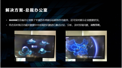引入MAXHUB以后,覆蓋互動(dòng)洽談區(qū)和高級(jí)會(huì)議區(qū)的MAXHUB不僅能夠通過(guò)中控電腦同時(shí)控制,播放同一視頻或圖片資料,提升企業(yè)形象宣傳效果,同時(shí)也改變了原有的業(yè)務(wù)執(zhí)行和團(tuán)隊(duì)協(xié)作的方式。智能會(huì)議平板借助無(wú)線投屏為設(shè)計(jì)師們提供了更具視覺(jué)表現(xiàn)力的方案展示舞臺(tái),可隨時(shí)批注的功能在業(yè)務(wù)溝通時(shí)大大增強(qiáng)客戶的參與感,使得成交率節(jié)節(jié)攀升。此外,設(shè)計(jì)圖、會(huì)議紀(jì)要掃碼保存推動(dòng)無(wú)紙化辦公模式,遠(yuǎn)程視頻會(huì)議有效降低了總公司與各分公司之間的差旅支出,有效降低了企業(yè)運(yùn)營(yíng)成本。