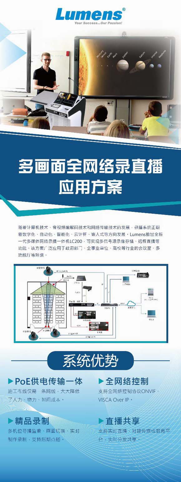 Lumens受邀參加本次展會,將攜帶最新4K超高清IP一體化攝像機、4K超高清槍型攝像機、4K大屏拼接處理器等高端產(chǎn)品,及行業(yè)最熱的Huddle Room緊湊型空間視頻會議、全網(wǎng)絡錄直播應用方案參展。