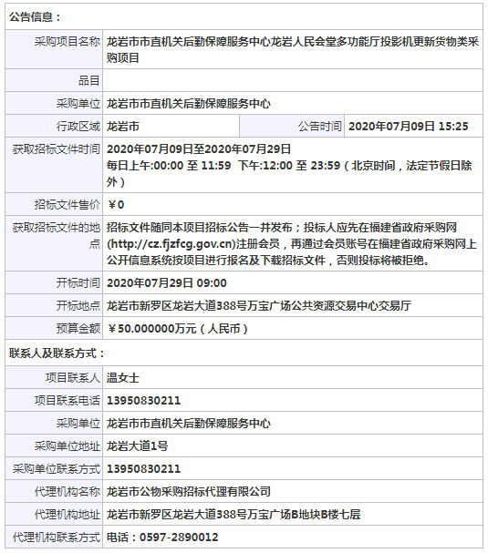 采購項目名稱: 龍巖市市直機關后勤保障服務中心龍巖人民會堂多功能廳投影機更新貨物類采購項目