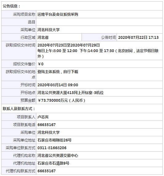 河北科技大學運維平臺及會議系統采購公開招標公告