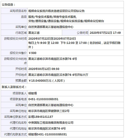 開標地點: 黑龍江省哈爾濱市南崗區漢水路76-6號開標大廳