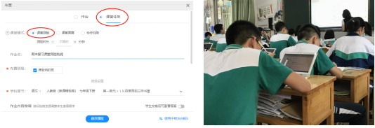圖3.教師空間提前準備課堂任務 圖4.課堂測驗推送至學生平板