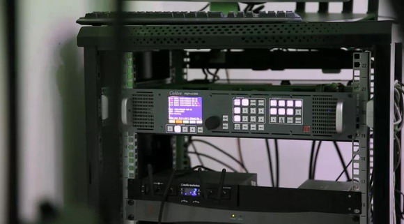 奧圖碼5G教學解決方案的應用方式是:教師在綠幕棚進行錄像 ,同時將影像傳輸到奧圖碼HQ Pro 1000影音處理器中,處理器也會將課程需要的的背景畫面、PPT簡報、3D畫面甚至AR影像與教師講課的身影融合,呈現出更加的沉浸的教學效果,然后實時將畫面傳遞到學生的屏幕上。