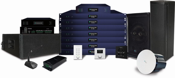 采用Dante數字音頻傳輸協議,結合自主研發的數字音頻處理器為核心向周邊拓展,將傳統的麥克風、接口機、音箱轉變成在Dante傳輸的產品,從而實現整個系統AoIP布局。
