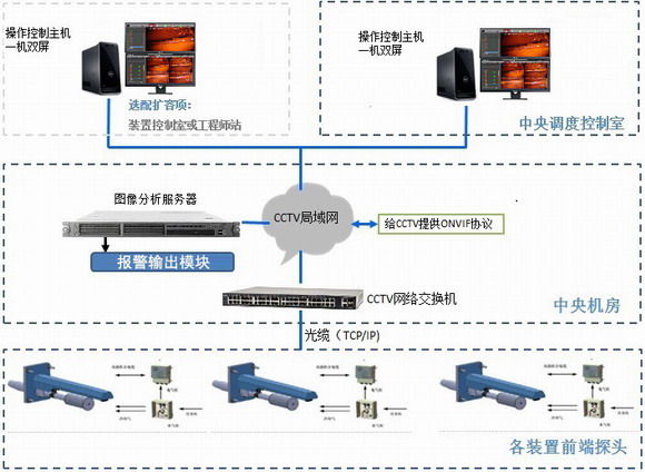內窺式高溫火焰監視系統主要由防爆內窺式一體化攝像機、防爆控制箱、工業網絡交換機、燒嘴熄火報警處理器、視頻存儲服務器、顯示終端等組成,廣泛應用于鋼鐵冶金、燃煤發電、垃圾焚燒發電、石油煉化等領域。