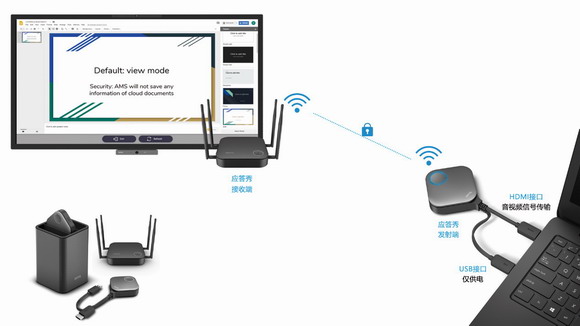 明基應答秀作為一款真免驅無線投屏器,包含1個接收端和2個發射端,發射端連接到筆記本電腦,通過HDMI獲取音視頻信號傳輸到接收端,再由接收端傳輸到投影機、會議平板等顯示設備上。應答秀發射端只要插入電腦接口,即可實現無線傳輸,通過硬件解碼,整個過程無主動或被動驅動運行,在市面上的投屏器中屬于鳳毛麟角。針對目前市面上以Mac為主流的輕薄本,明基還專門推出了Type-C接口的產品,方便客戶使用,而無需采用轉接口。