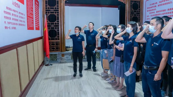 奧威亞黨總支書記、副董事長姚世嫻帶領全體黨員重溫入黨誓詞,讓黨員回想入黨之初對黨和人民的莊嚴承諾,牢記為人民服務的使命。