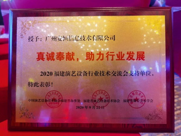 此次盛會,對福建省舞臺演繹行業有杰出貢獻的單位進行了表彰,安恒集團被授予“真誠奉獻,助力行業發展”的殊榮。