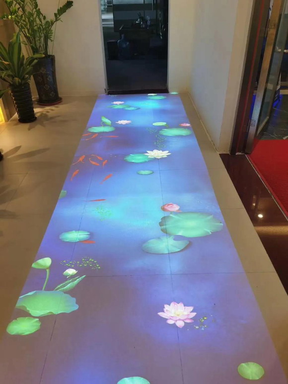 地面融合互動投影方案采用2臺松下2萬小時長壽命光源X系列寬屏新品PT-XW392C,亮度3600lm(中心亮度:3800lm),分辨率WXGA,對比度20000:1,并內置松下新推出的藍光減少模式。