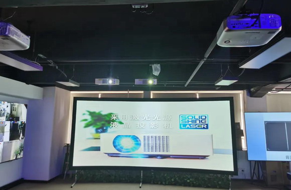 沉浸式餐廳整合投影解決方案是由折疊屏融合投影(2臺松下液晶激光PT-BMZ50C+1臺松下高端旗艦PT-BX630C)、桌面投影(1臺松下高端旗艦PT-BX440C)、紗幕全息投影(2臺松下液晶激光PT-BMZ50C)三部分組成,營造沉浸式用餐體驗。紗幕全息投影使虛擬人像活靈活現,增強了用餐環境的互動性,創意十足。