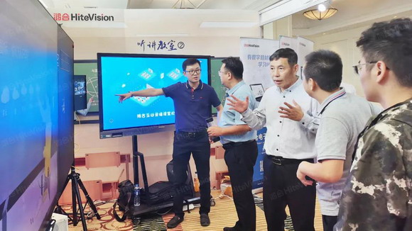 在本次培訓會期間,鴻合為現場領導及老師精心呈現了鴻合互動錄播教室解決方案。來到鴻合展區,可以看到由智能交互黑板/智能交互平板、互動錄播主機、4K高清攝像機、全向拾音麥克、互動顯示屏等硬件設備,搭配鴻合互動課堂系統組成的鴻合互動錄播教室,F場鴻合工作人員真實還原了一個主講教室,多個聽講教室異地同步直播教學場景,讓遠隔百里的城鄉師生“近在咫尺”,“同上一堂課”,吸引了眾多與會者駐足參觀。