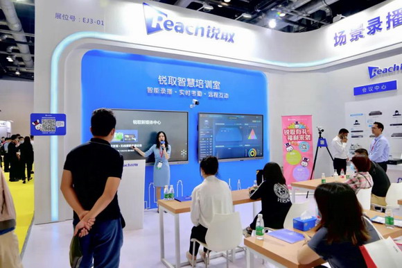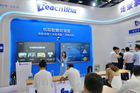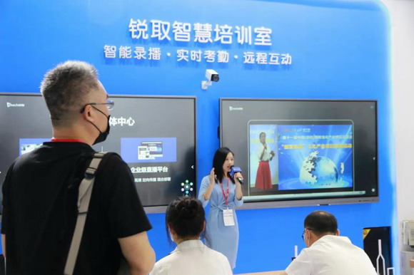 針對企業多地同步培訓、實現多方遠程互動培訓需求,本次展會銳取還展出高性價比、智能化的整體解決方案——銳取智慧培訓室,無需裝修、簡單部署即可實現多方遠程互動培訓,滿足用戶線上線下培訓學習的全場景應用。