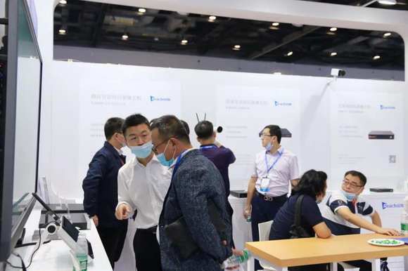 為了讓嘉賓實時體驗互聯網培訓室解決方案極致簡便的功能特性,展會現場銳取通過全新的互聯網錄播主機,將培訓過程直接同步至釘釘、騰訊會議、Welink等互聯網辦公平臺。一時間受到了觀展專業人士的一致追捧,掀起問詢熱潮。