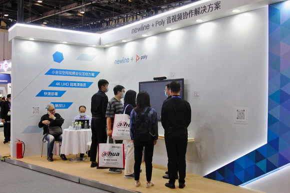newline+騰訊會議Rooms解決方案是最火爆的展區(qū),觀眾期待一睹TC系列交互屏的獨(dú)特魅力,它是首款通過騰訊會議專業(yè)認(rèn)證的交互屏,9月10日剛剛問世,是newline與騰訊攜手革新云會議的重量級新品。現(xiàn)場演示了北京與深圳的視頻會議與遠(yuǎn)程協(xié)作,只需非常簡單的創(chuàng)建與加入,就能快速開啟視頻會議。這一方案背后是多平臺協(xié)同、AI賦能、安全體系、云原生架構(gòu)等軟件優(yōu)勢,以及“All in One”一體化設(shè)計(jì)、4K UHD超高清、超過120% sRGB廣色域、專屬特制攝像頭隱私蓋板等硬件優(yōu)勢。newline TC系列交互屏讓企業(yè)用戶暢享軟硬件一體的全場景便捷會議。
