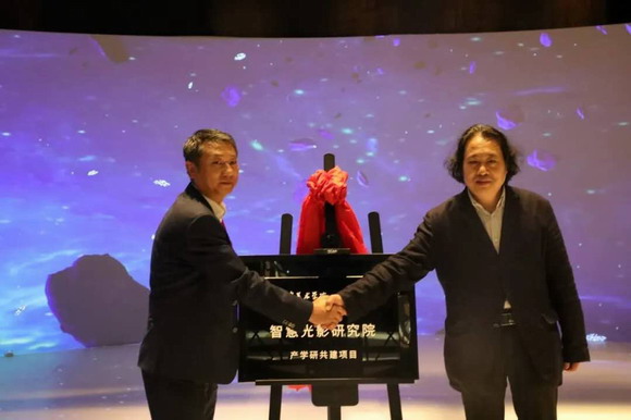 東方中原集團(tuán)CEO朱諄先生,天津美術(shù)學(xué)院院長、中國國家畫院教授賈廣健先生,中央美術(shù)學(xué)院研究生院常務(wù)副院長、中國國家畫院版畫院秘書長陳琦先生,瀾景科技創(chuàng)始人李林先生等眾多領(lǐng)導(dǎo)共同出席了此次三方合作的“智慧光影研究院”揭幕儀式。