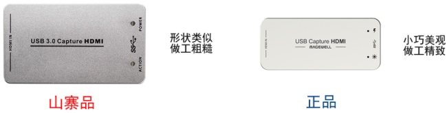 【辨識方法】美樂威capture系列采集盒產品外觀上均印有“MAGEWELL”商標,且為白色。如無此商標信息或是其他紙質貼標,則非正品。