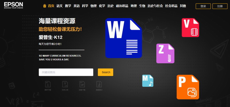 考慮到繁忙的教學日常,教師有限的精力,愛普生K12教育資源平臺依據教師使用習慣設計,老師們不用擔心平臺的使用還有額外的學習成本。搭載課件下載、文件上傳、試卷下載等眾多實用功能,平臺化搜索、界面一目了然。老師們遇到了自己感興趣的素材,還可以保存可編輯版本,根據自己的備課需求修改使用。