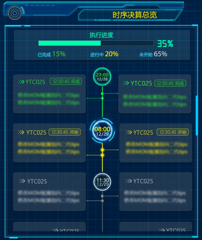 年終決算保障可視化系統根據各業務系統年終決算準備階段、開展階段的工作內容定制可視化場景,通過對工作時序的進度總覽、分系統工作時序的實時狀態提供全程監督,及時應對風險,推進年終決算工作的順利進行,為領導決策提供可視化依據。