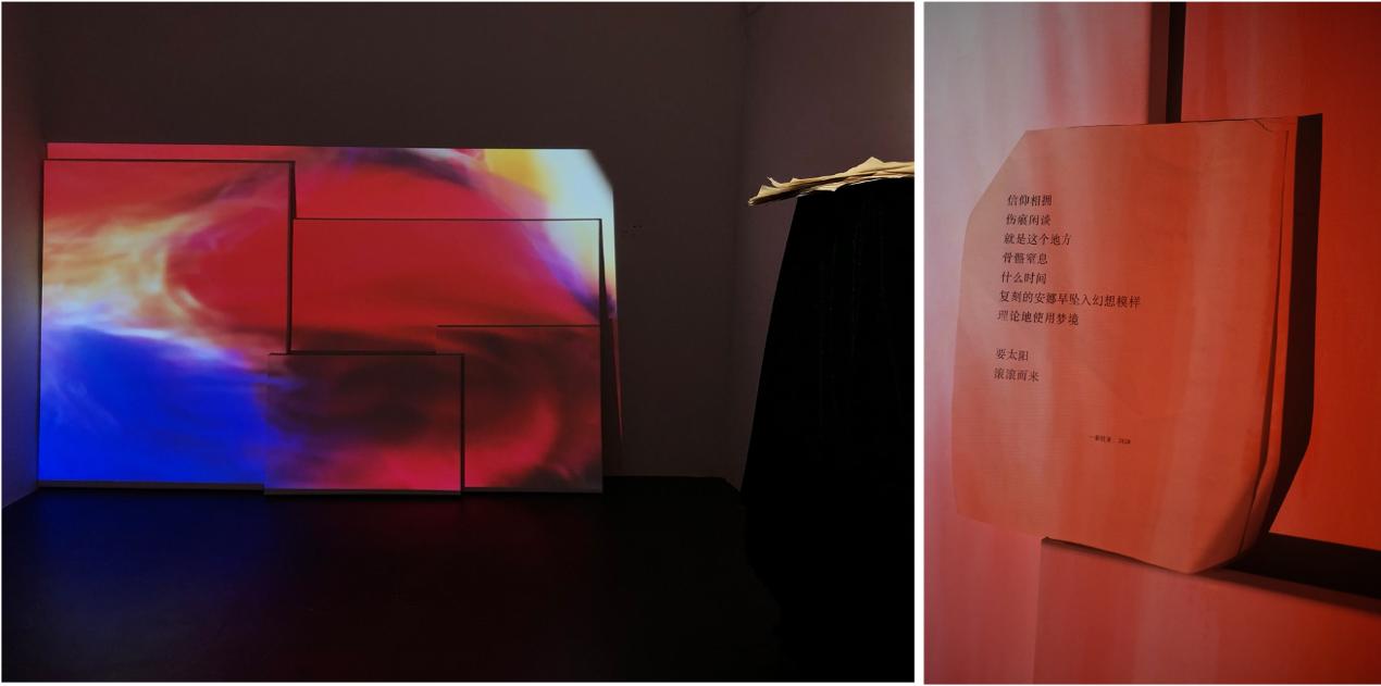 既然絢爛和生命都可以在視覺的謊言中憑空捏造,帶給人如此真實(shí)的感受,那么身處生命長(zhǎng)河的我們,又能否找到真實(shí)的自我?“說(shuō)謊”的不僅是花,也可能是自我,甚至是世界。在這個(gè)用色彩和科技構(gòu)建的虛構(gòu)空間里,參展者通過(guò)模糊而動(dòng)態(tài)的投影,發(fā)現(xiàn)了另一個(gè)觀看世界的方式。