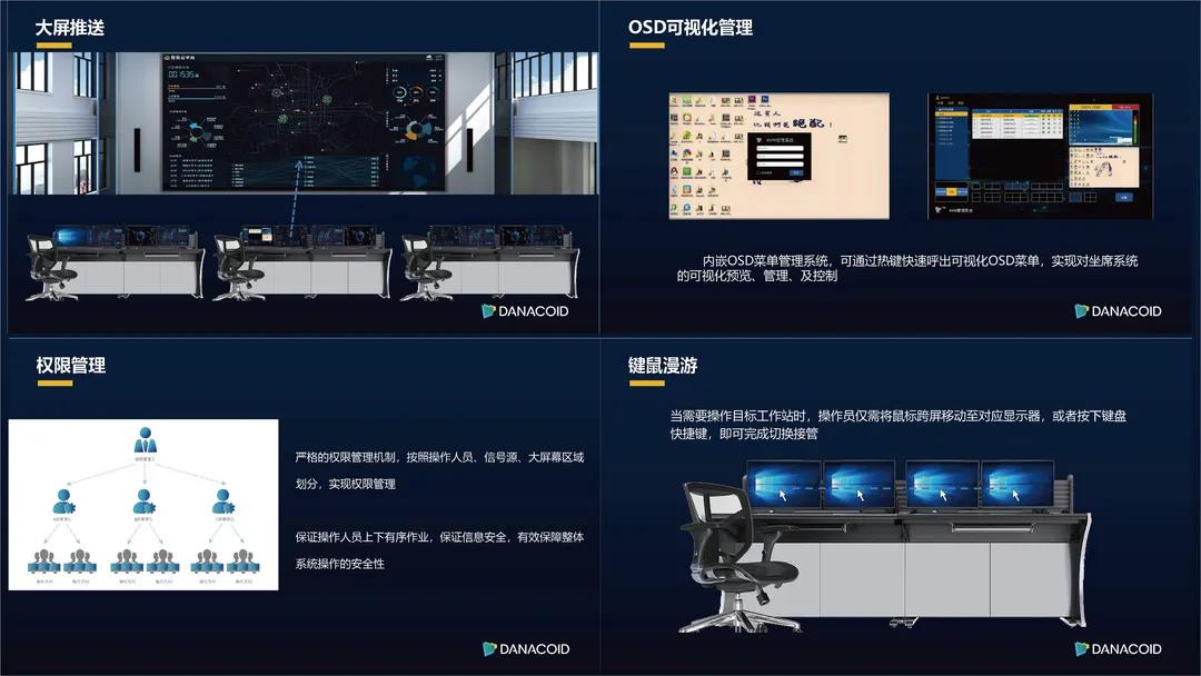 雙引擎引領分布式新趨勢,通過一根網線傳輸兩種不同協議的信號,支持單臺設備兼容兩個平臺控制;KVM超低延時,視頻無壓縮,4:4:4 全采樣;大屏顯示任意漫游疊加;IPC等平臺可無縫對接。分布式系統去中心化的設計擴展性靈活,音視頻全IP化可遠距離傳輸,資源共享,多平臺融合對接。