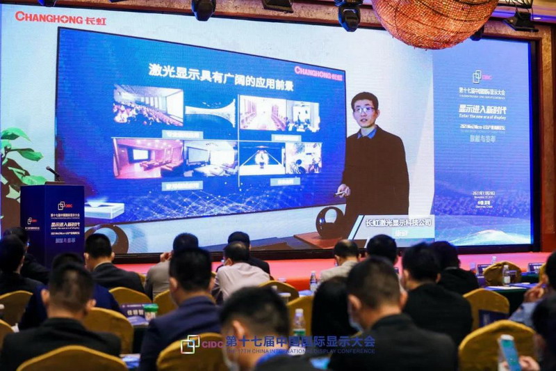 長虹作為國內激光顯示行業領軍企業之一,受邀參會。受疫情影響,長虹激光顯示科技公司研發中心副總經理康健博士,以線上方式向與會嘉賓們分享激光顯示技術的發展現狀和前景。